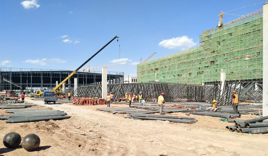 On October 13th, the Qingdao New Airport’s regulatory center warehouse project for international express mail, which was built by Xinguangzheng Group, was held a ceremony at the construction site. This project has a construction area of 17,000 square meters. More strikingly, the roof adopts grid structure of tetragonal pyramid with bolt sphere joints.